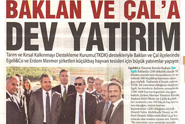 Doğa Agriculture Hayvancılık Gıda Pazarlama San. was established in September 2010 and carries out cattle breeding and milk production. and Tic. Inc. (“Doğa Tarım”), 90.05% of its shares were purchased by EGC Tarım Girişim in June 2012 and the remaining 9.95% in July 2013.