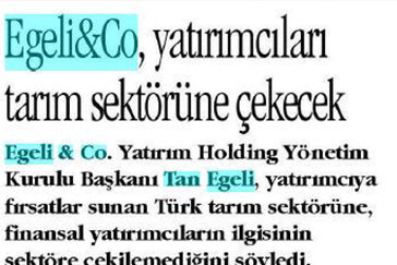 Egeli&Co. Investment Holding A.Ş. (EGCYH), which was established with the aim of providing sustainable returns in the long term, carries out real asset investments in the energy, real estate, infrastructure, finance and agriculture sectors with its value-oriented and innovative approach and evaluates investment opportunities in these sectors.