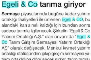 Egeli&Co. Tarım Girişim Sermayesi Yatırım Ortaklığı A.Ş. (“EGCYO”), halka açık bir yatırım şirketidir.